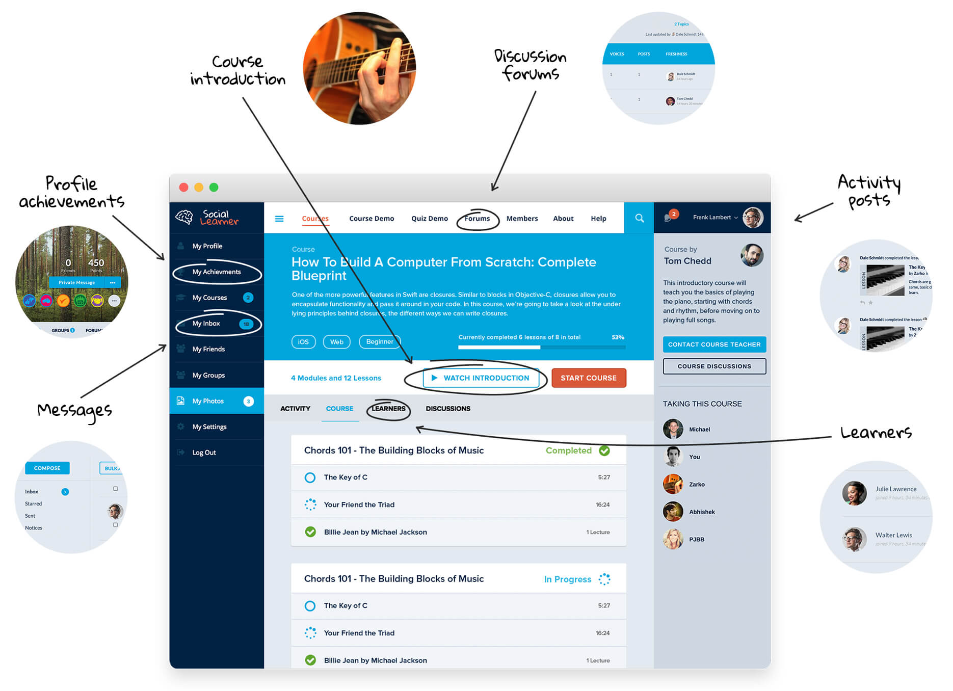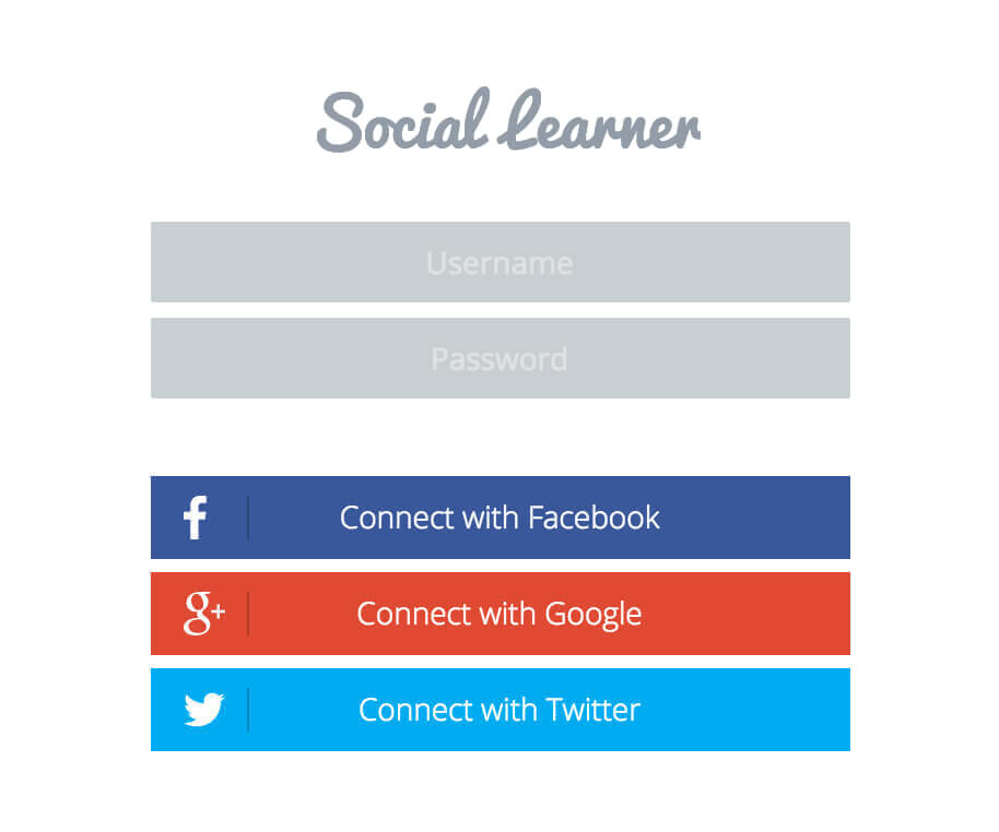 Make it easy for people to join your network. Social Learner integrates fully with the most popular, free social login plugin on the market "WordPress Social Login", giving you the ability to integrate with 26+ sites, including Twitter, Facebook, LinkedIn and Google.